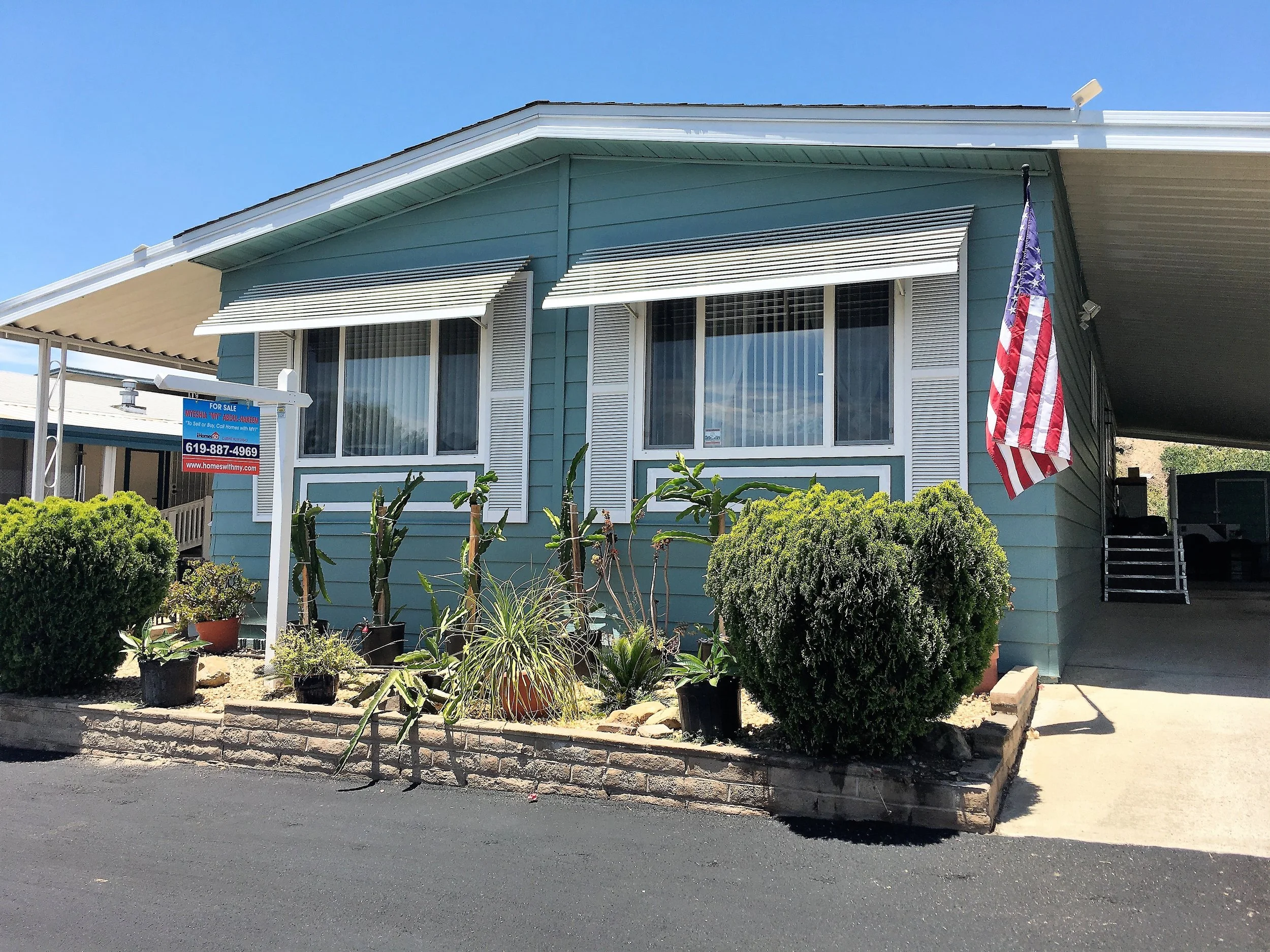 Welcome home to your 2 bedroom 2 bath mobile home in the highly sought after community of Bonita Hills Estates! It's a completely updated home with new roof, deck, waterproof laminated flooring throughout, new title in bathrooms, new island w/granite counter top and LED lighting, new windows, solar tube, oven, ceiling fans, dishwasher, new refrigerator, 30 year warranty on exterior paint on roof, curved awnings for extra space when parking and freshly painted on inside.
